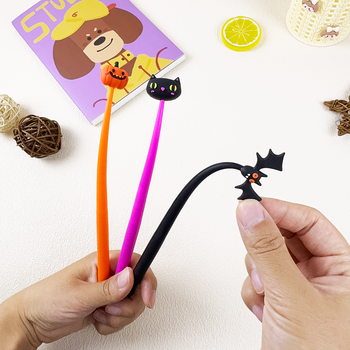 Halloween Silicone Shaking Neutral Pen Pumpkin Bat Spooky Creative Modeling Cute Gel Ink Pen Student Stationery Festival Gifts